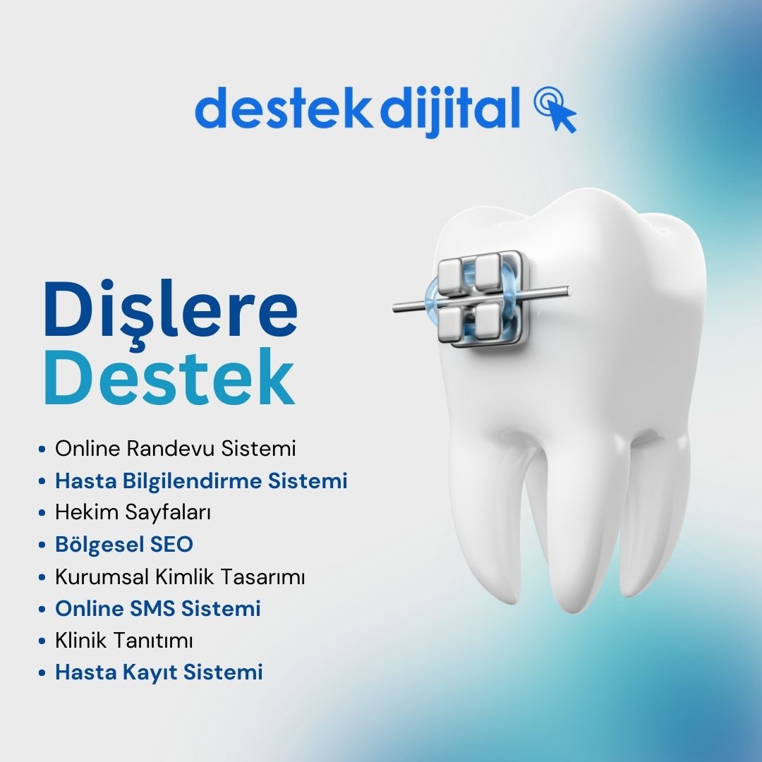 Bu noktada DestekDijital, ihtiyaç analizi ile başlayan süreçte sizi adım adım yönlendirir ve web sitenizi estetik, işlevsel ve hasta odaklı bir platforma dönüştürür. Online randevu sistemleri, hasta takip ve yönetim modülleri, SEO optimizasyonu ve sürekli teknik destek ile dijital varlığınız sadece bir web sitesi olmanın ötesine geçer; marka değerinizi artıran, hasta portföyünüzü genişleten ve klinik yönetiminizi güçlendiren stratejik bir avantaja dönüşür. Böylece dijital dünyada güçlü bir varlık sergileyerek hem mevcut hem de potansiyel hastalarınıza güvenilir bir deneyim sunabilirsiniz.